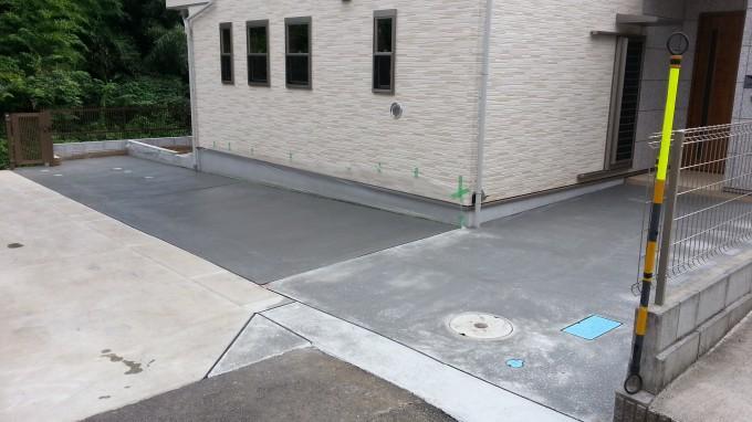 駐車場スペースのコンクリート工事・フェンス・門扉・玄関タイル 凝ってはいませんが、お客様の意向でいたってシンプルに