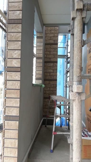 ハウスメーカーの高級建売物件の外壁の一部にタイルを貼りました。 弊社でタイルを施工した後、目地は専門の目地屋にて施工です。