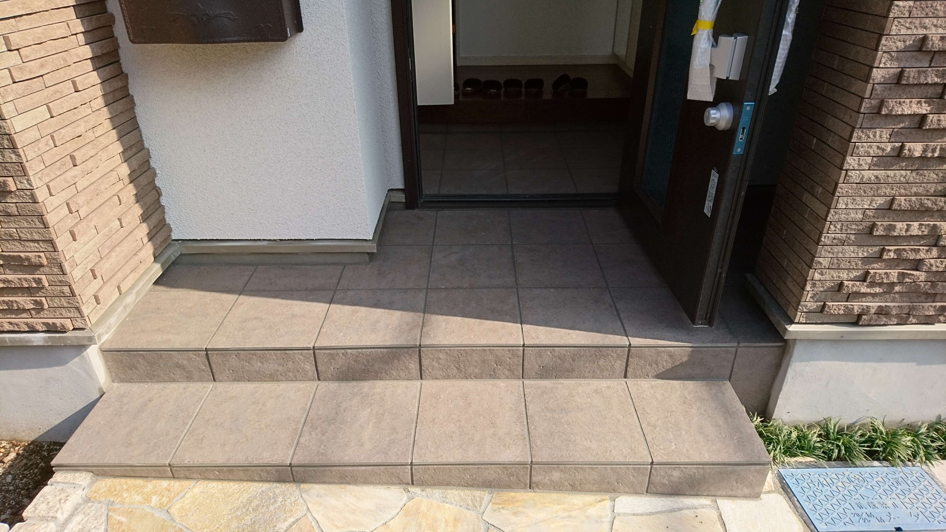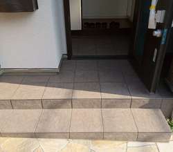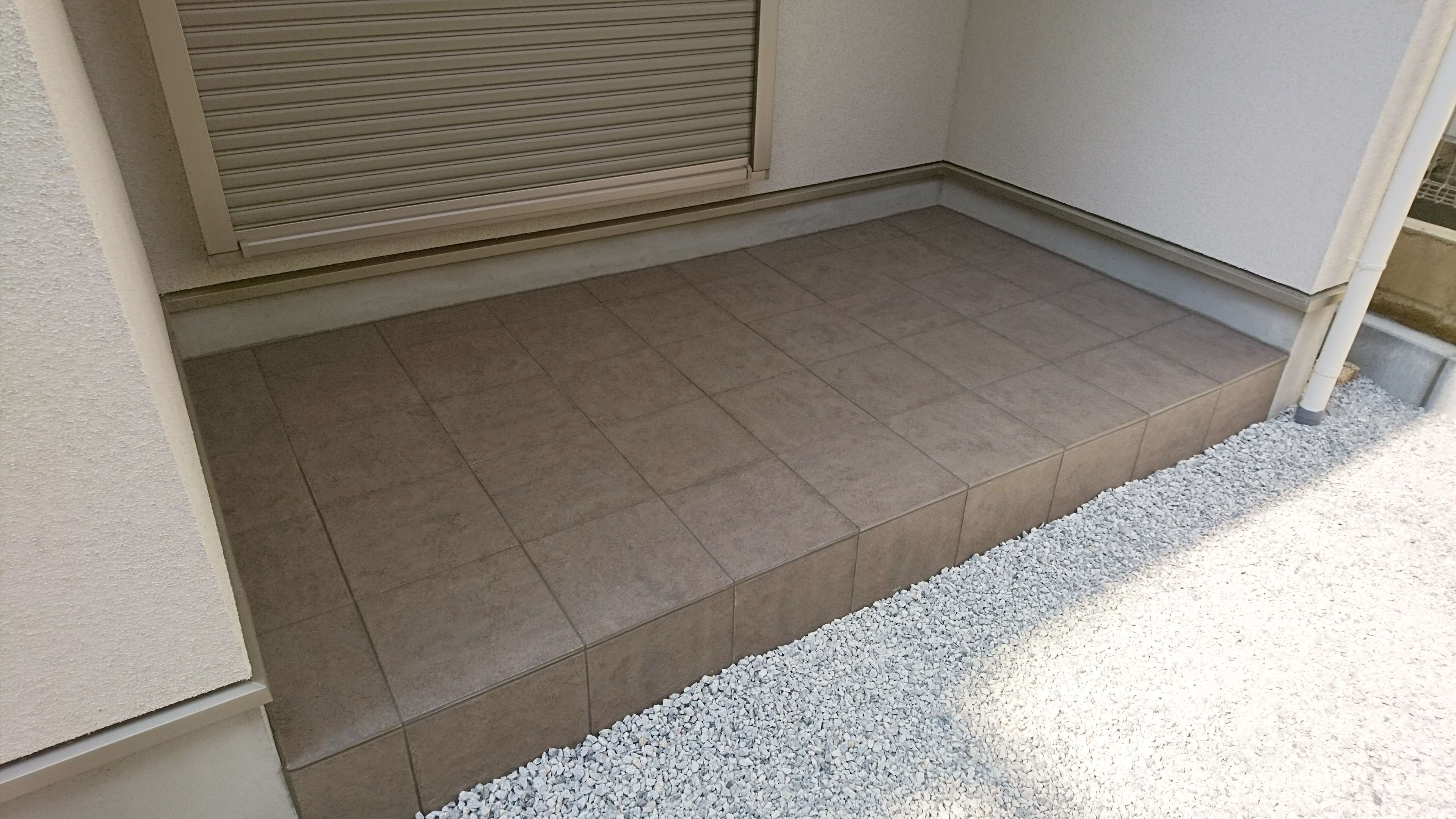 玄関の中外を裏庭のテラスの床にタイルを貼りました。