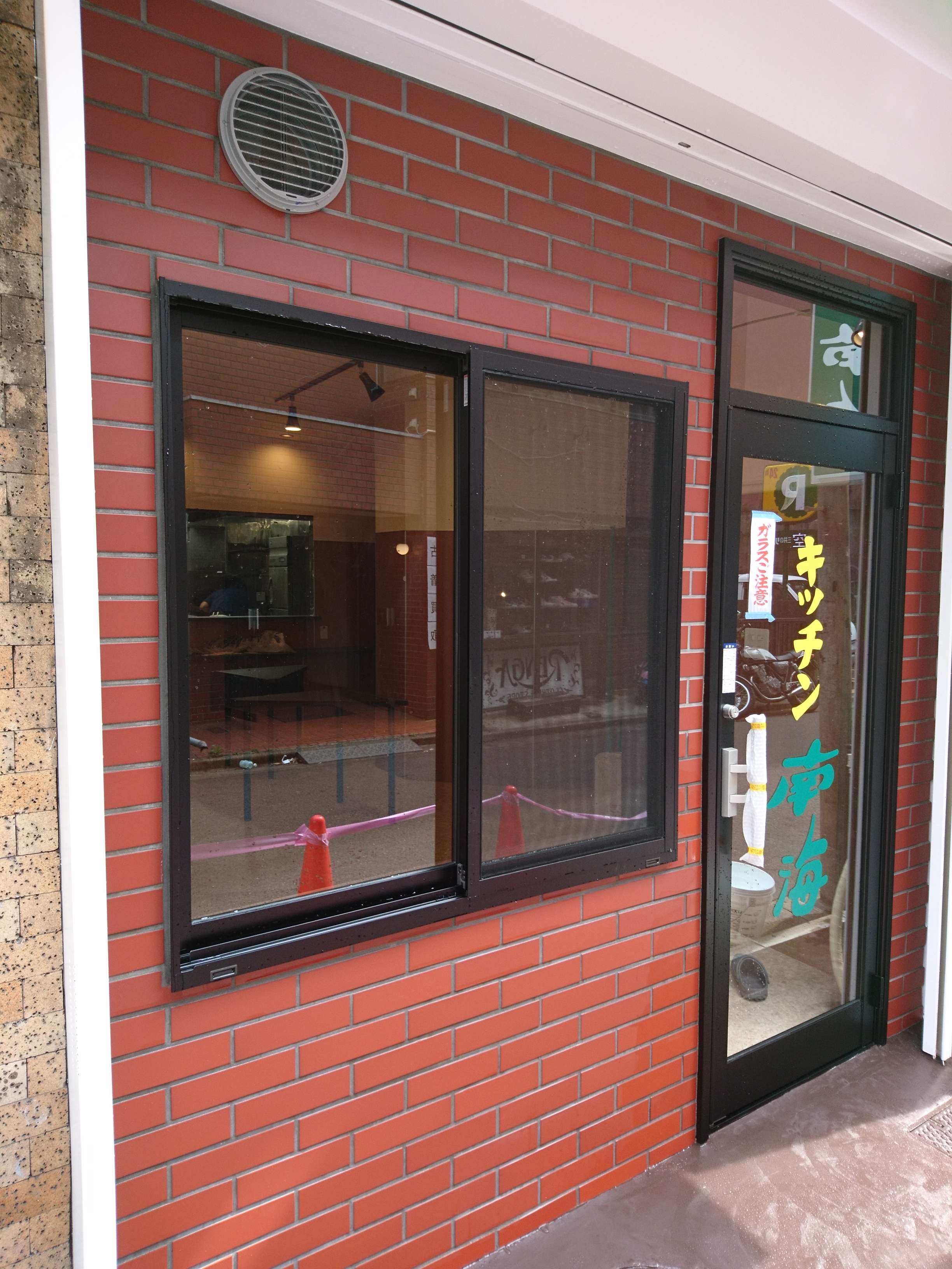 店舗外の壁タイルを貼りました。