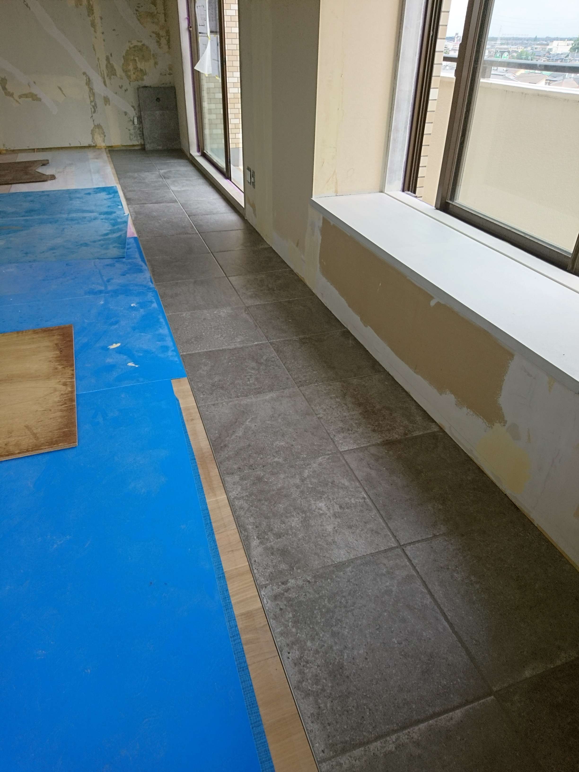 400角タイルを貼りました。まだ工事途中でしたので雰囲気伝わりにくいですが