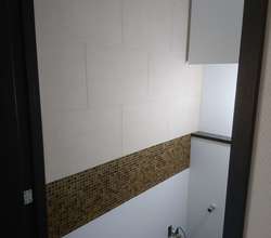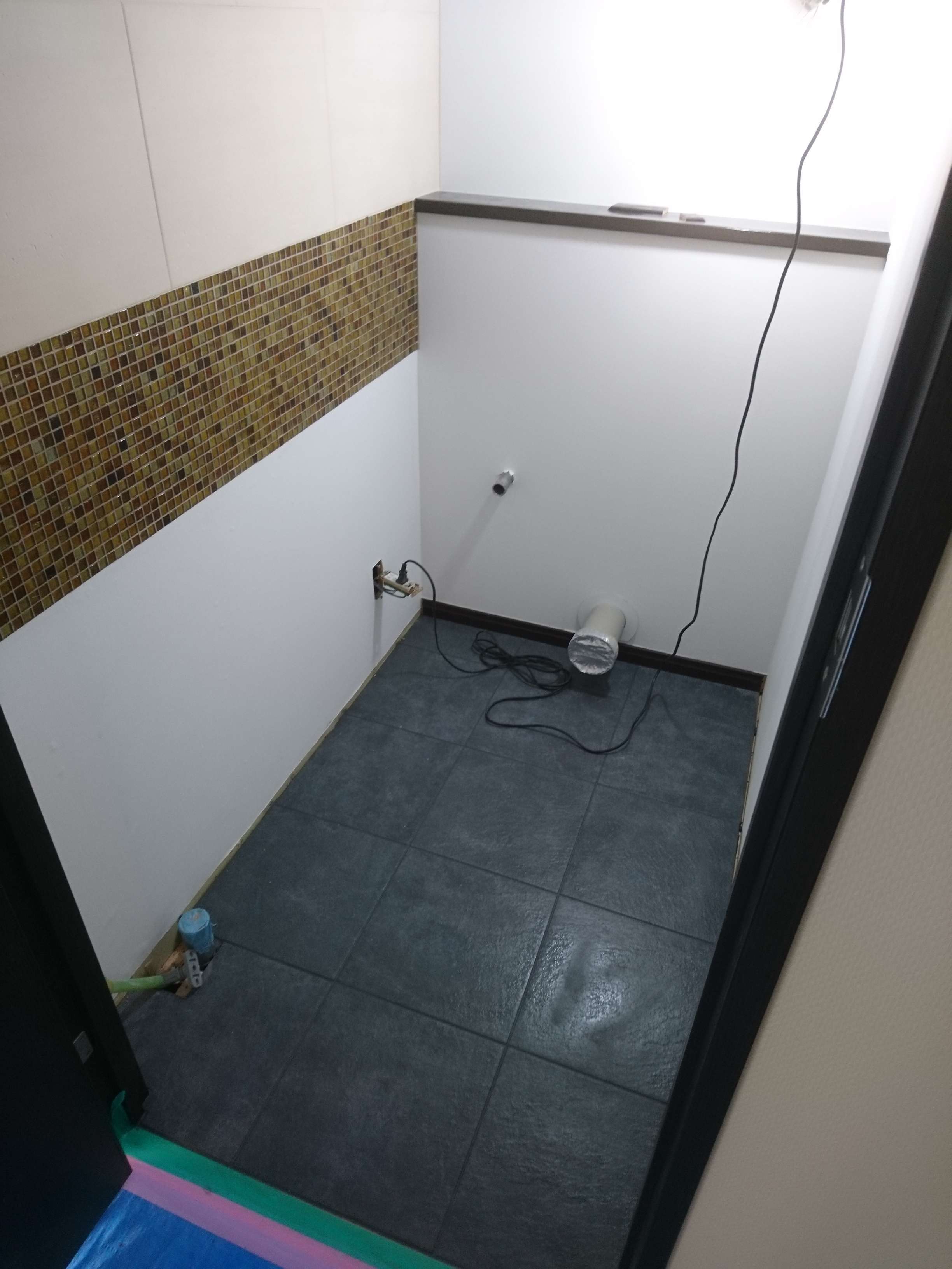 東京都新宿区にてトイレエコカラット&ガラスモザイク、床にはリビエラの300角タイル貼りです。