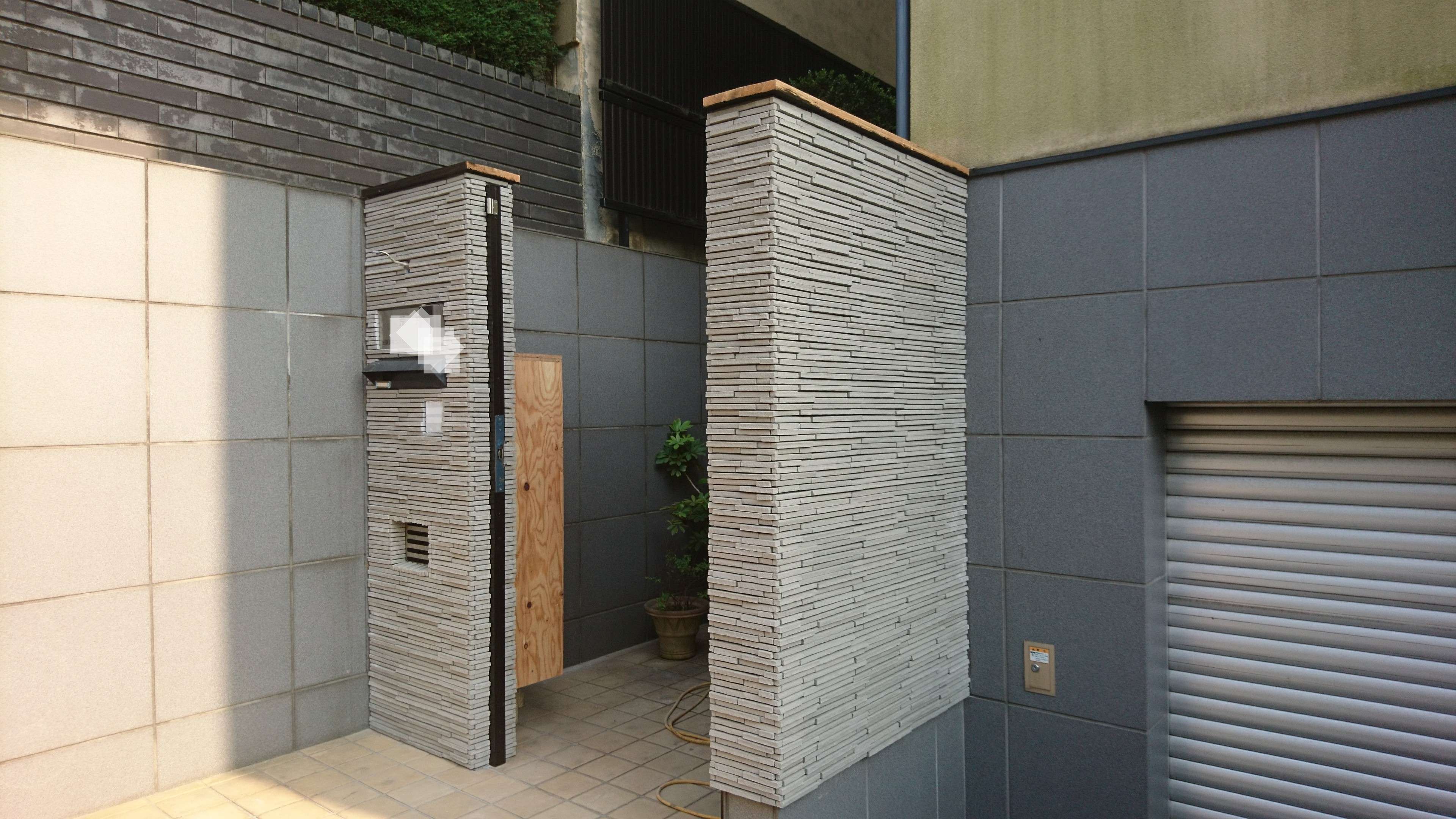 東京都大田区田園調布にて既存のポスト等は生かして、門塀に新しくタイルを貼りました。