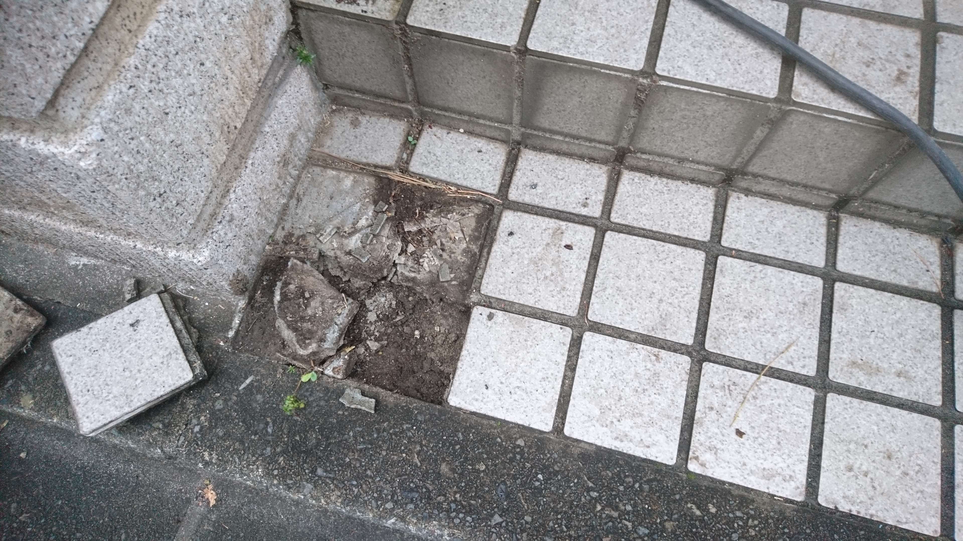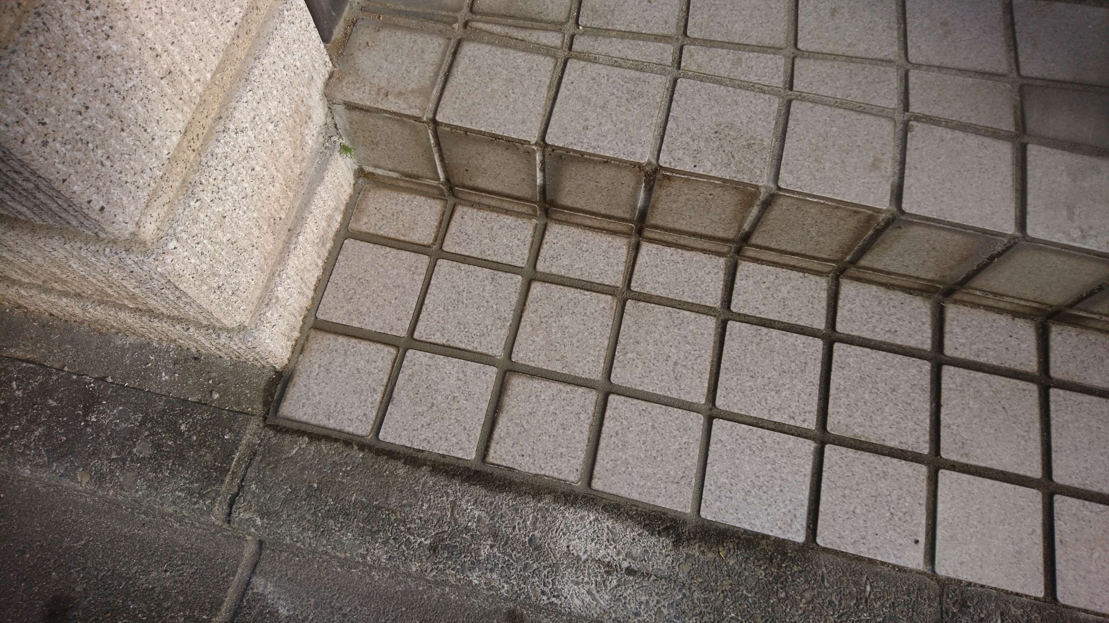 玄関床タイルが剥がれてしまっていたので、既存のタイルを再利用して補修しました。