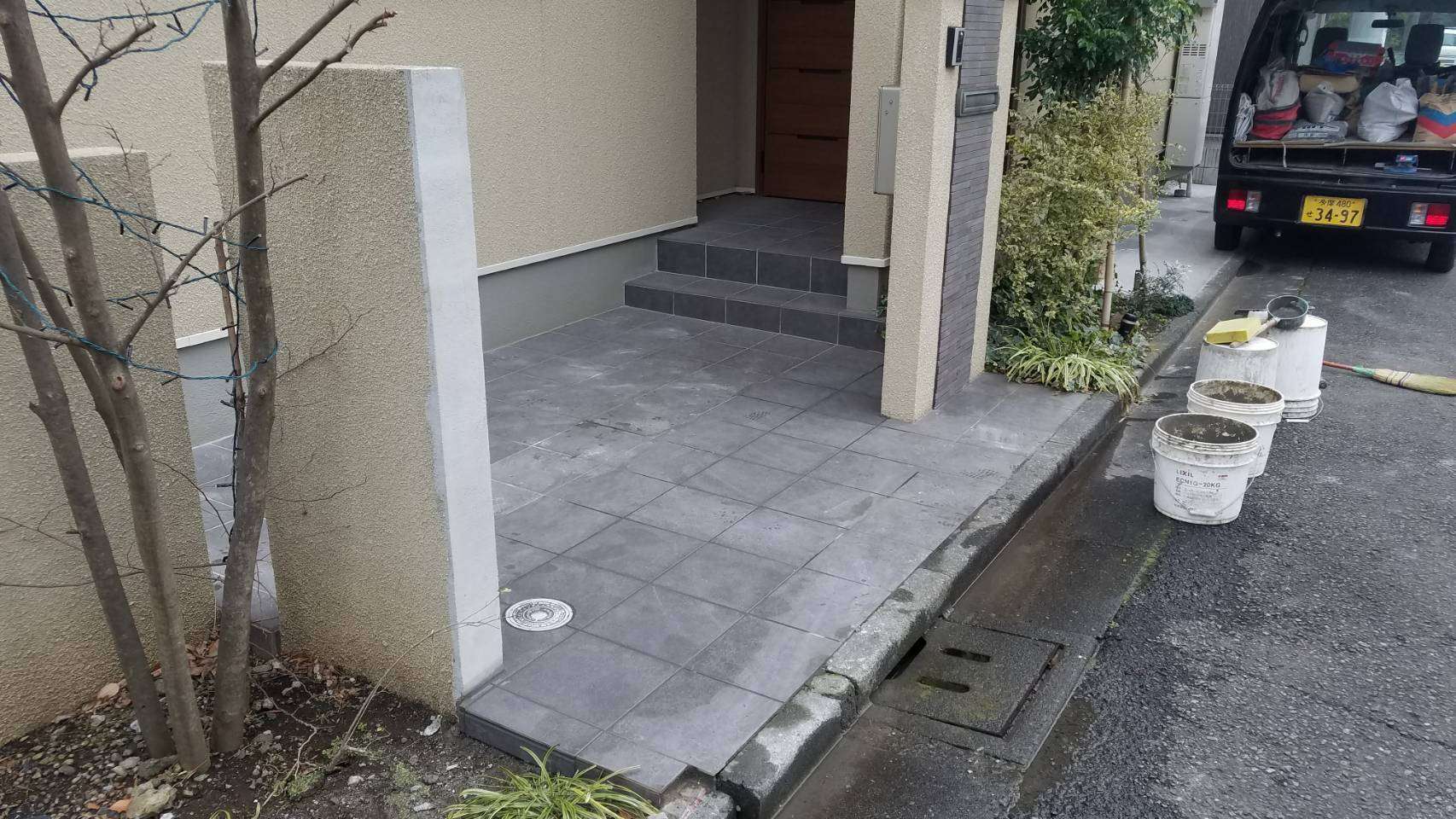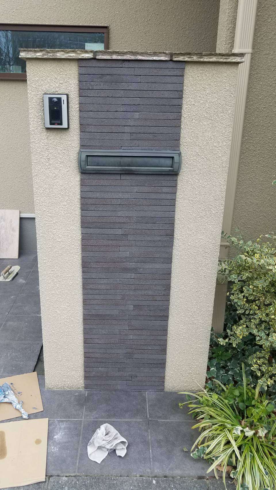 門塀のポスト部分をボーダータイルでデザインして貼りました。