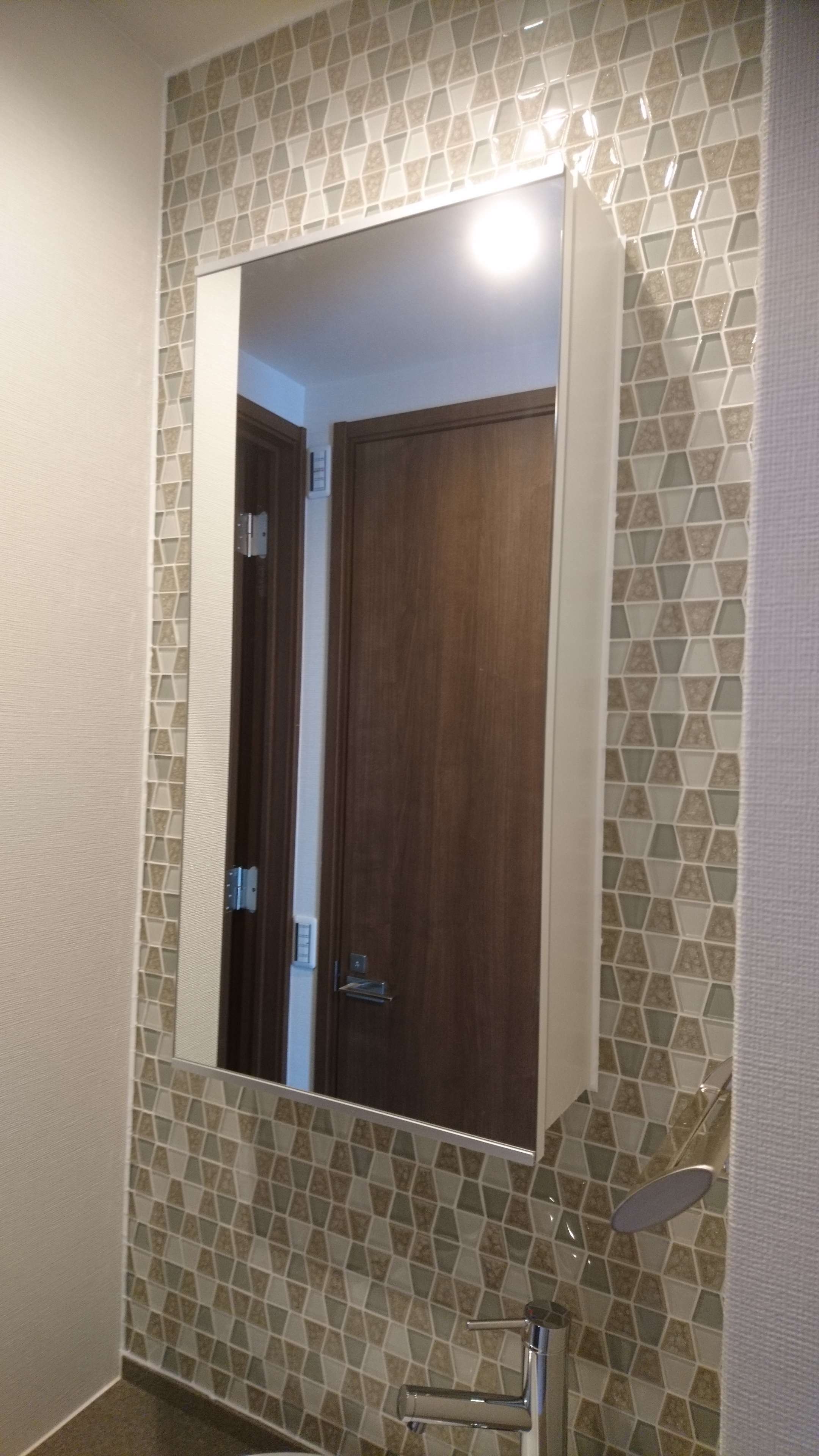 お部屋の1面にエコカラットを貼りました。 少し地味な感じですがわかりますか?