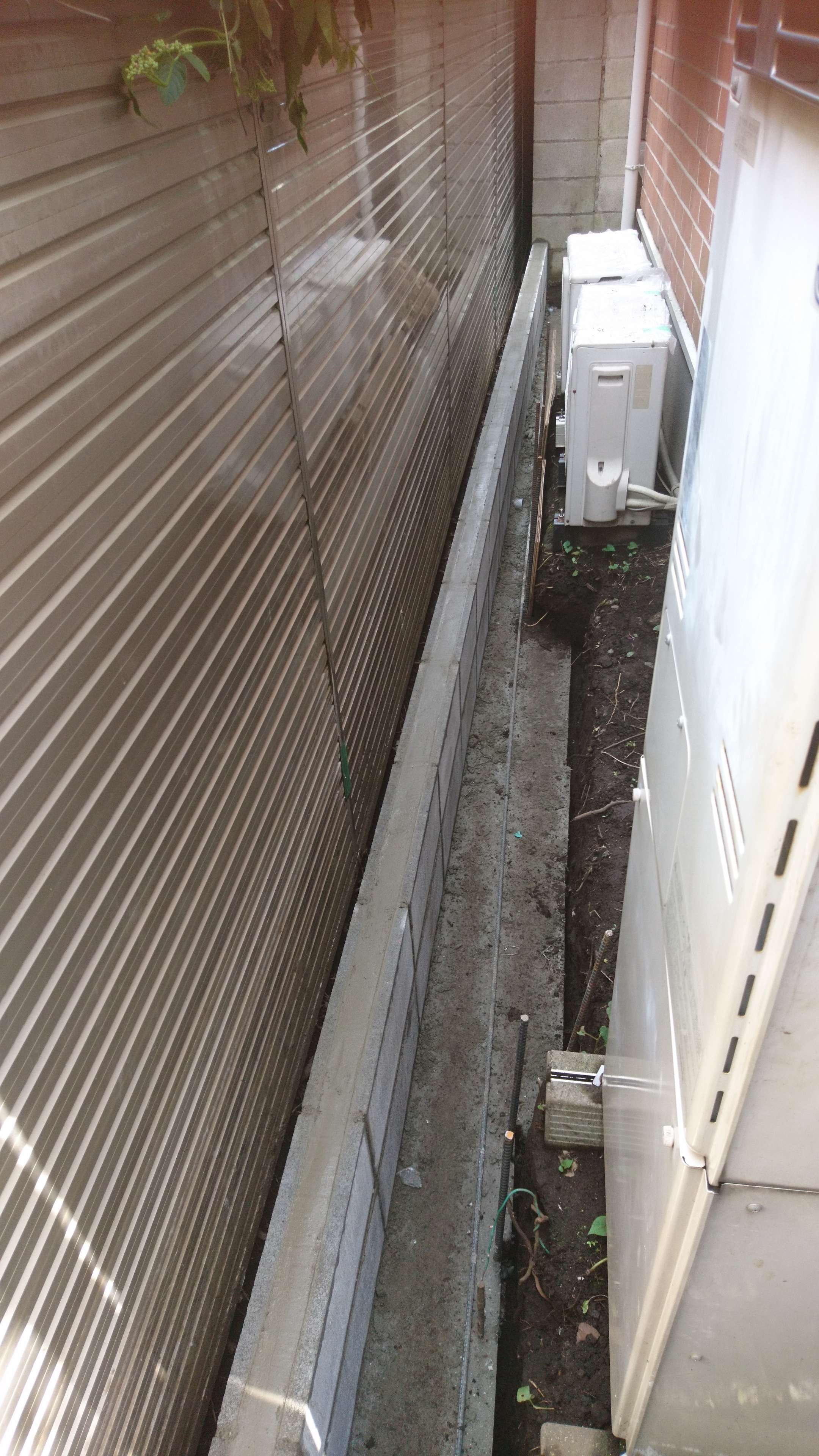 隣地境界の土土留めブロック積みです。