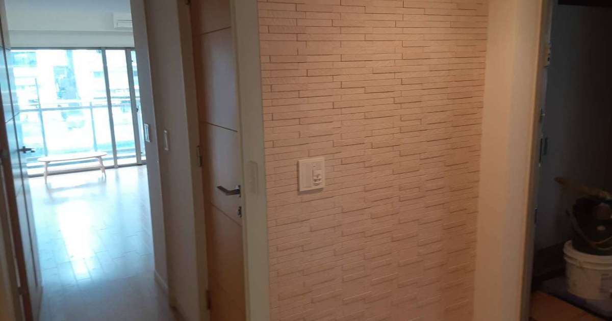 東京都江東区にて玄関壁にエコカラットを貼りました。