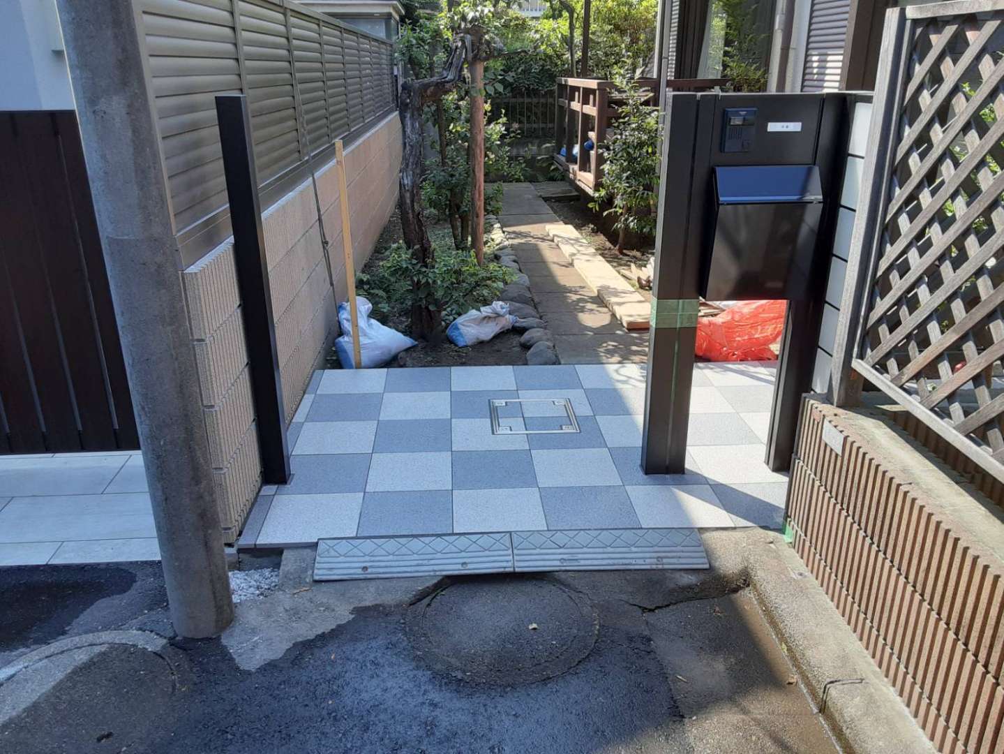 外構工事に伴う床タイル施工です。