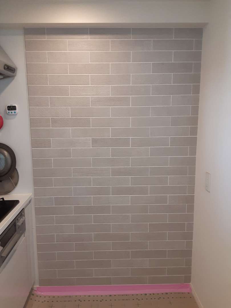 東京都葛飾区にて、キッチン脇の壁1面にタイルを貼りました