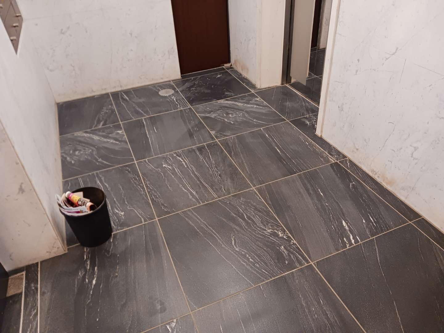 マンション・アパート 東京都墨田区にて マンションエントランス床既存400角の石かアドヴァンの600角に張替ました 場所 東京都墨田区 施工内容 マンションエントランス床タイル 前の施工事例 戸建て 外壁ブリックタイル 次の施工事例 戸建て 東京都稲城市にて外壁ボンド貼り