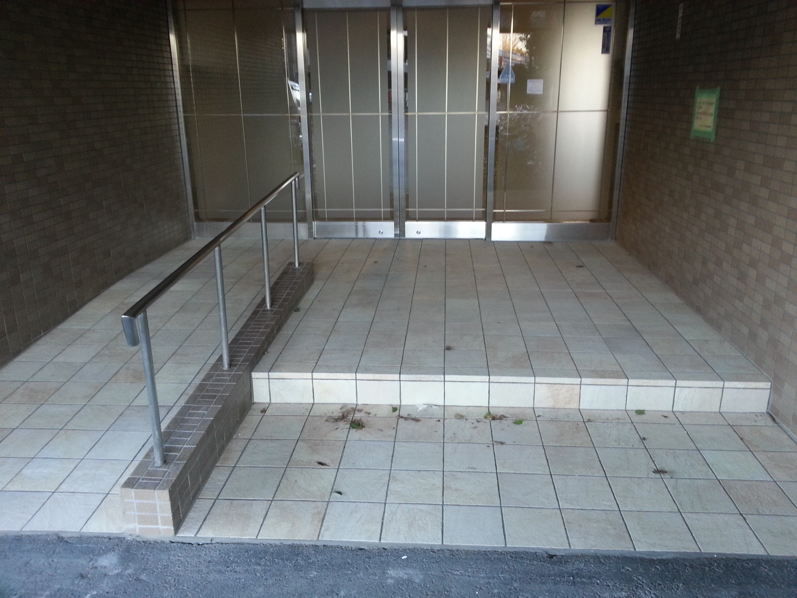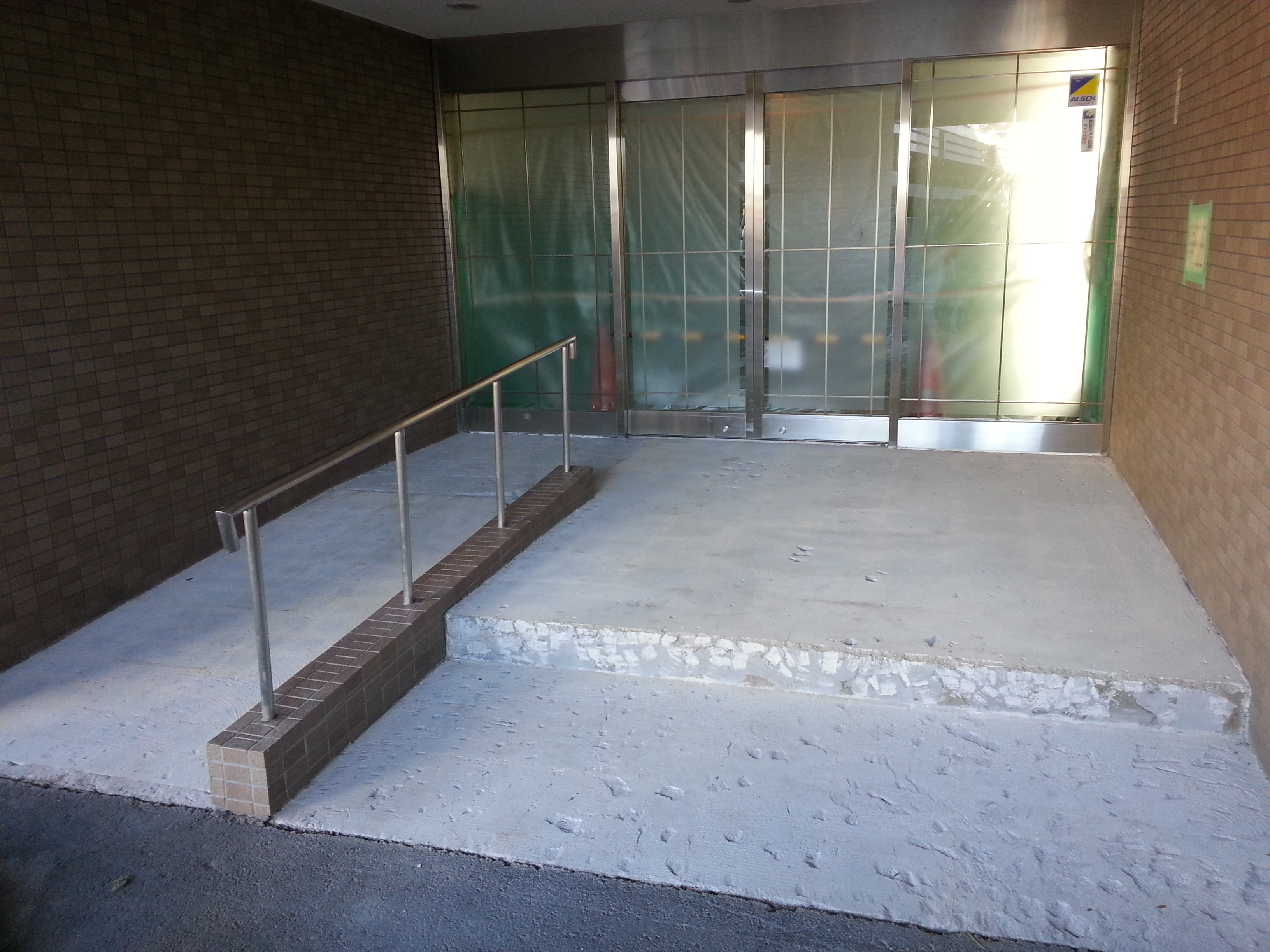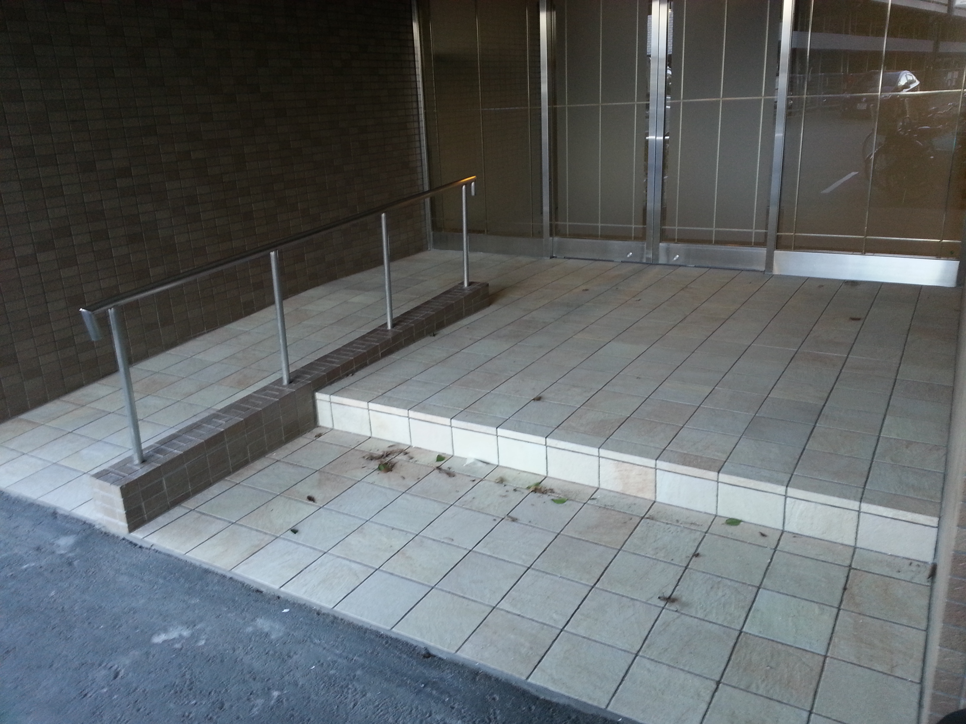 マンションのエントランス床の貼替工事です。既存は300角でしたが、ほとんどが浮いた状態でしたので